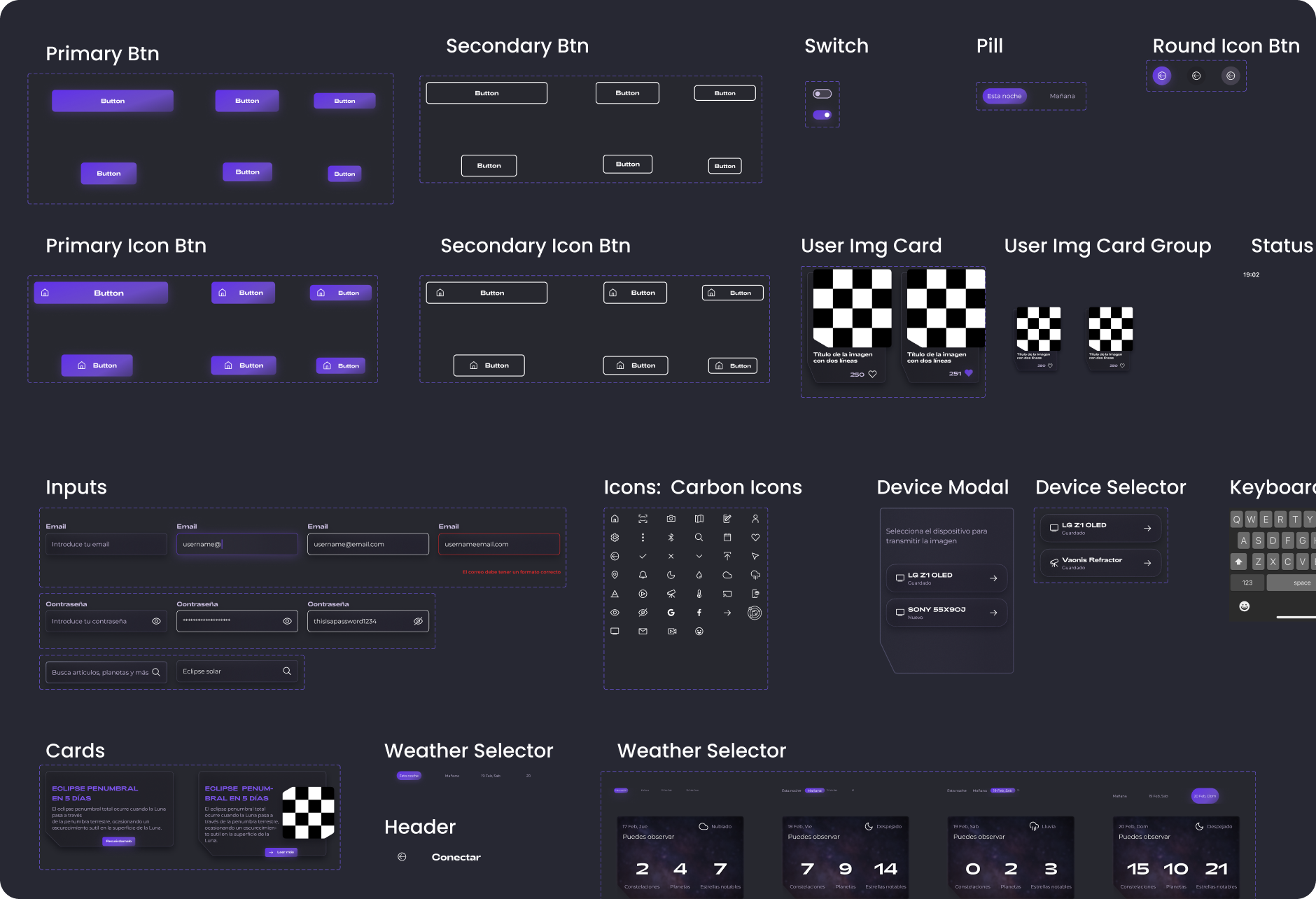 Showcase of some components created for the project